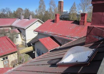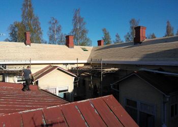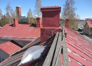 Vanhassa katossa vakavia tuuletusongelmia. Remontin yhteydessä korjattiin aiheutuneet lahovauriot. Kattoikkuna uusittiin. Kattorakennetta korotettiin kymmenisen senttiä, että saatiin järjestettyä tuulettuva kattorakenne pellin alle. Peltinä 0,6mm mattapural(*) -pinnoitettu pelti, joka saumattiin paikalleen perinteisenä peltisepäntyönä.